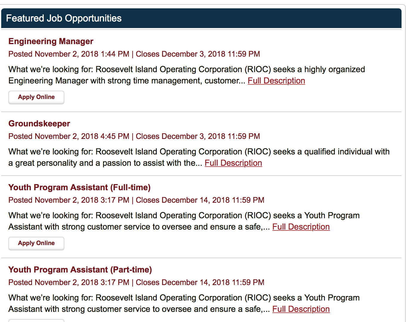 The Roosevelt Island Operating Corp (RIOC) Real Estate Development Advisory Committee is meeting Wednesday, November 7. According to RIOC: