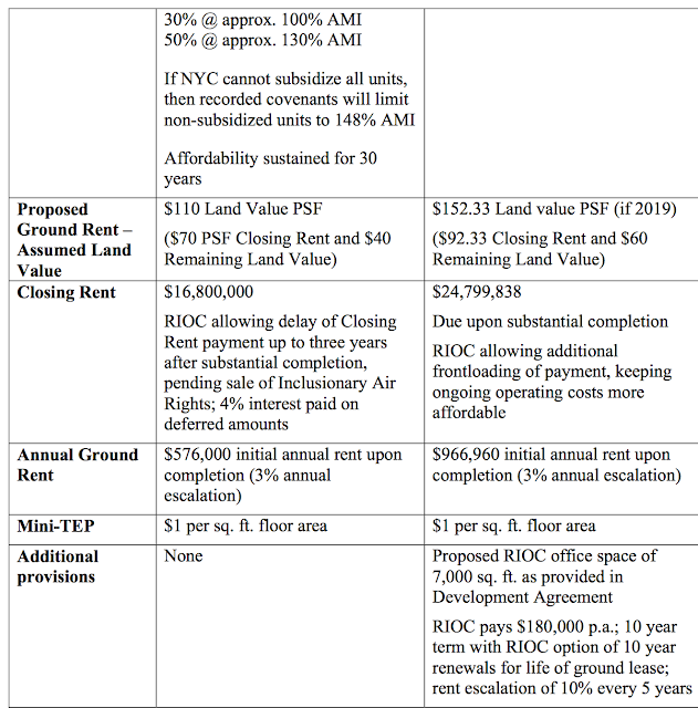 ... in accordance with the provisions of the Public Authorities Accountability Act (PAAA), RIOC is required to take certain proposed measures at least ninety days before the closing, which must occur in late December to qualify for the New York City affordability program in question. As such the vote could not be postponed by more than a week or so. Mr. David Kramer, Principal at Hudson Companies, further elaborated on the timeline....The agreement was approved but the closing did not occur in December 2017 as scheduled and still has not.